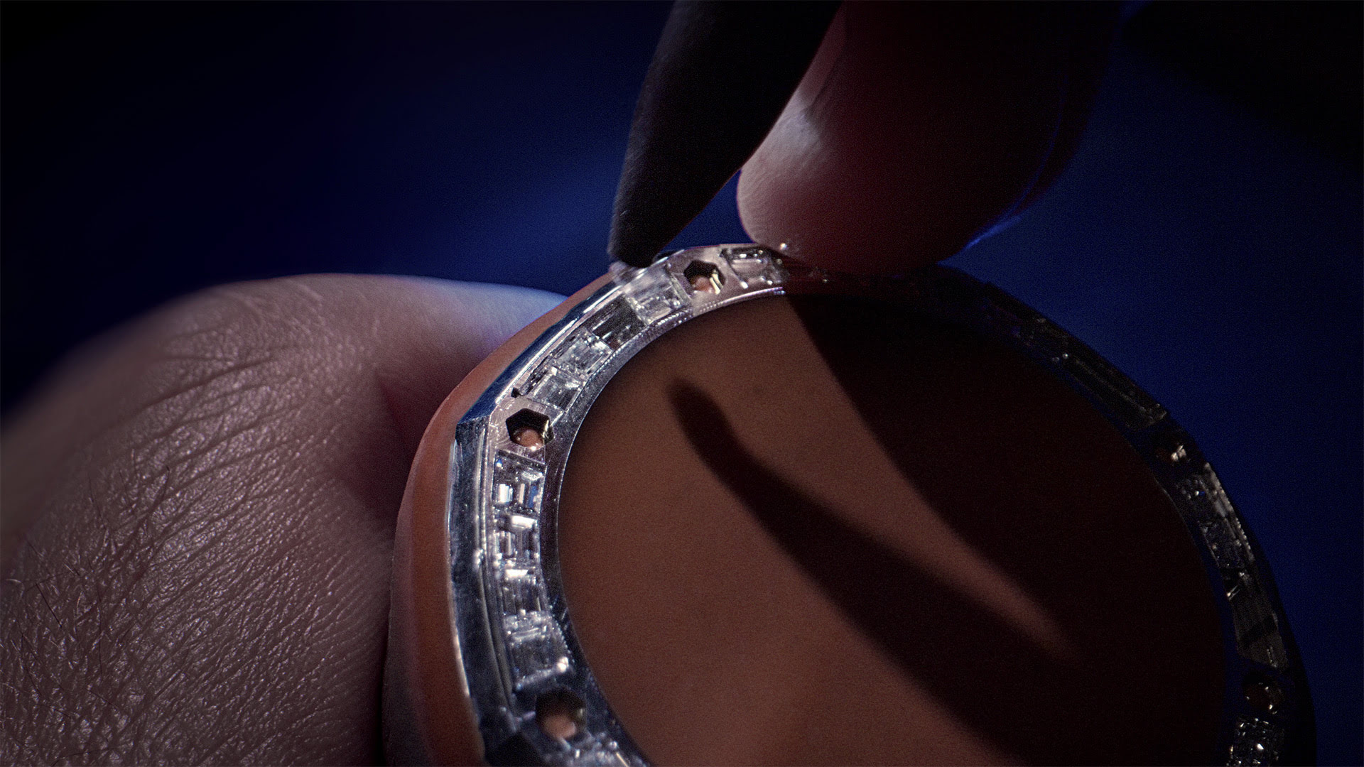 Ультратонкий корпус и браслет из белого золота 750-й пробы украшает традиционное для Мануфактуры чередование сатинированных поверхностей и полированных фасок, которые взаимодействуют со светом подобно граням бриллианта.
