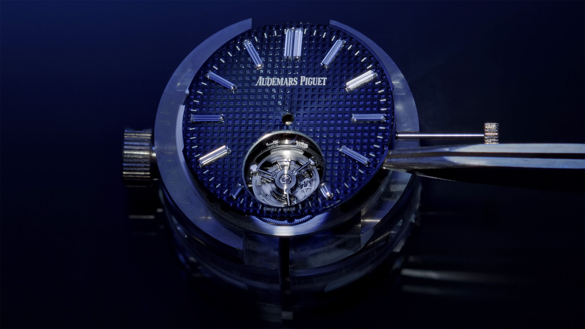 Нужный оттенок создается с помощью вакуумного напыления (Physical Vapour Deposition, PVD), а дымчатый эффект по окружности достигается аккуратным распылением черного лака на вращающийся циферблат.